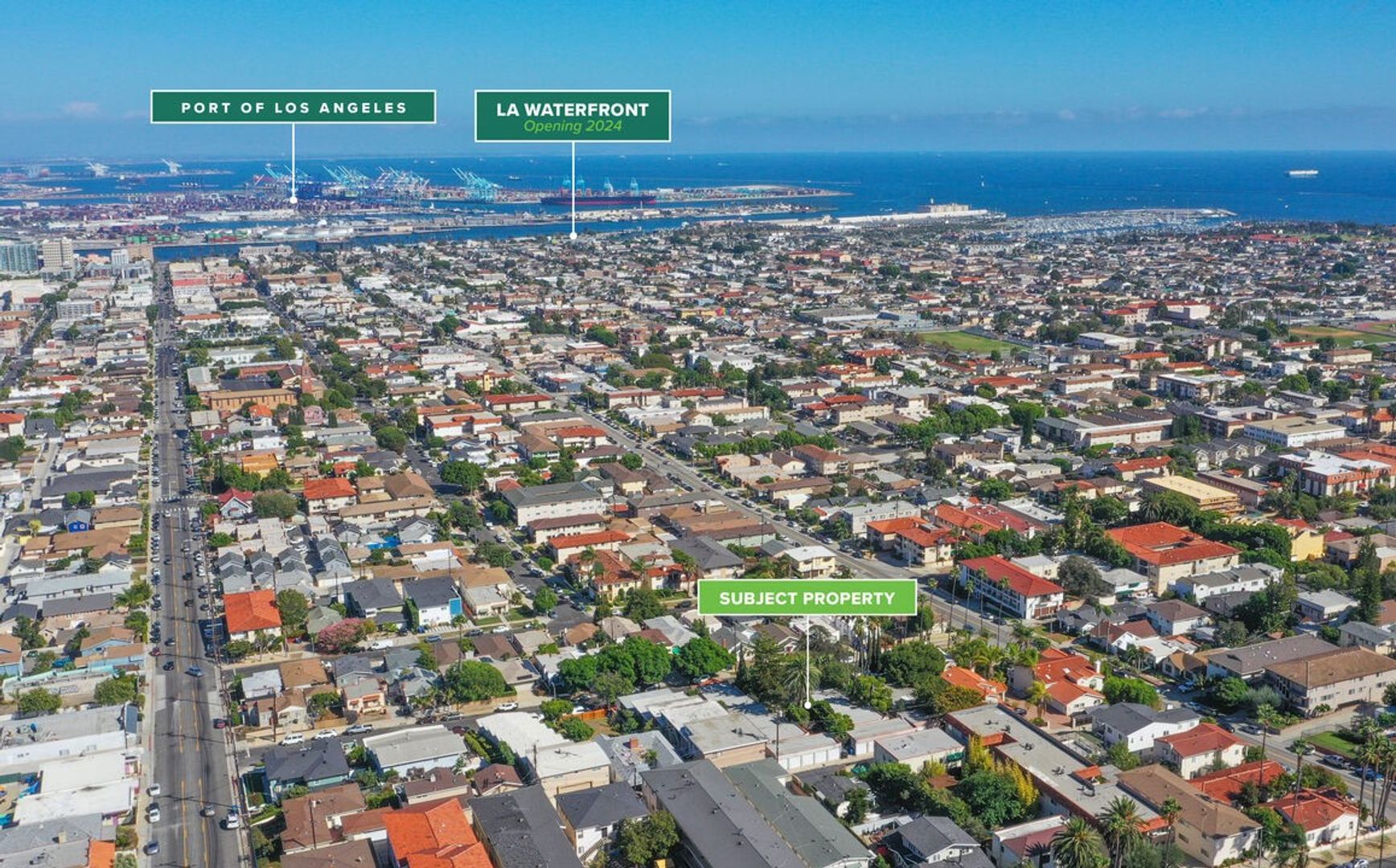 Vista Del Oro property near Weymouth Corners. 12 attached bungalows, 6 on each side, with coved ceilings, arched doorways, original hardwood, walk-in closets, and a lovely utility room with washer/dryer hookups in each unit. Spacious 19,000 square foot lot with gardens, king palm trees and a fountain. Make this spacious 1 bedroom 1 bath apartment home yours today! Be near everything great about San Pedro and the beautiful coastline.